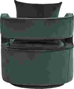 Distinctive and versatile, the Rockaway Point swivel chair adds modern style and a touch of fun to the living room, reading nook, or private lounge. This greenaccent piece features a plush fill to match its inviting velvet upholstery, and the uniquely shaped open-back frame sits on a sturdy stainless steel base. Upholstery: 100% Polyester.