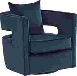 Distinctive and versatile, the Rockaway Point swivel chair adds modern style and a touch of fun to the living room, reading nook, or private lounge. This navy blue accent piece features a plush fill to match its inviting velvet upholstery, and the uniquely shaped open-back frame sits on a sturdy stainless steel base. Upholstery: 100% Polyester.