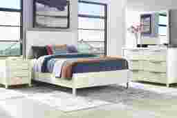 Welcoming with an elegant, peaceful stillness any time of day, the Rockport collection's soft edges and strong style are always effortless, never ordinary. Merging contemporary coastal charm with a touch of modern flair, this bed presents oak veneers with rich natural woodgrain finished in crisp white throughout. The headboard features a stunning matchbook pattern, its curved corners set into a rounded frame that tapers gently to a poised pair of legs. A full-length panel showcases the woodgrain uninterrupted on the footboard. Mattress and foundation (if required) sold separately.