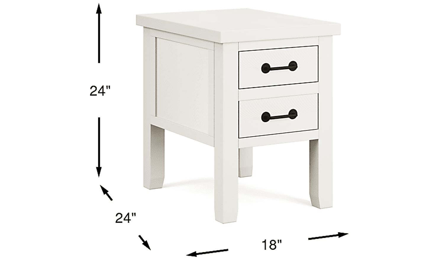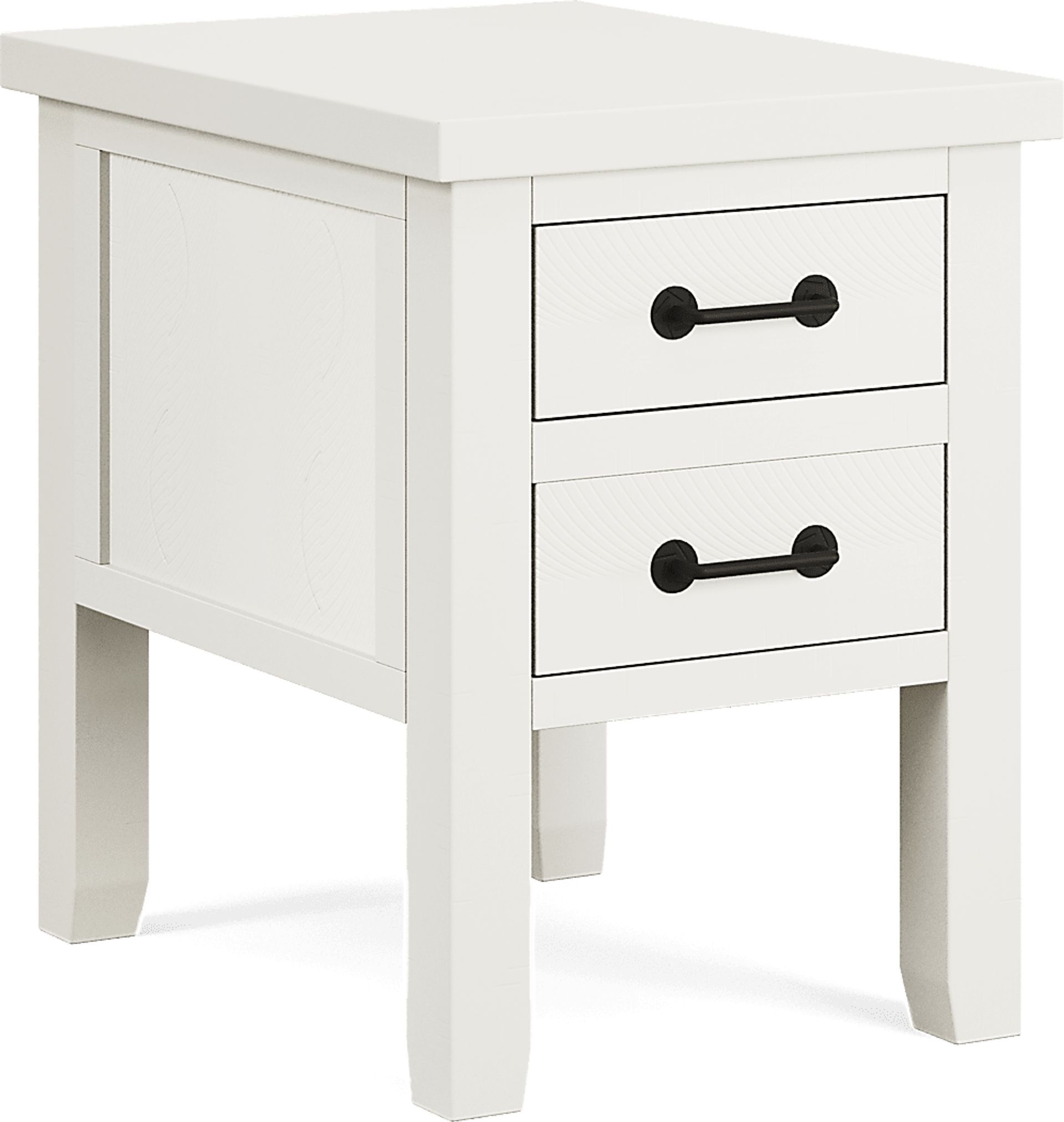 Comforting nostalgia meets a lively new perspective when the Rocky Creek chairside table finds its home in your space. Offering wood planks in a white finish and two drawers for storage, this piece also includes handy UBS charging to keep your devices juiced up nearby.