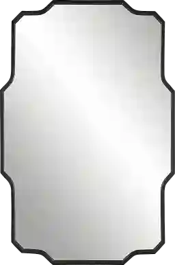 The Rogeretta mirror is a quintessential transitional piece, marrying a traditional silhouette with contemporary ironwork. The frame features clean linear details softened by graceful curves, allowing it to complement both classic and modern interiors. The matte black finish is a popular "neutral" in modern design that pairs seamlessly with existing black hardware, lighting fixtures, or dark wood furniture.