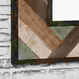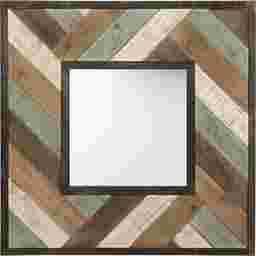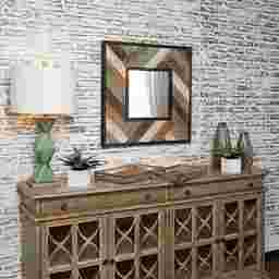 The Rolater wall mirror is a true representative of the shabby style. It is adorned by a thick wooden frame, made of wooden planks in chevron pattern and finished in weathered tones of teal, brown, white and gray. This unique mirror can blend into any space due to its versatile but neutral tones and its simple but beautiful design. Customer assembly is required.