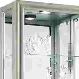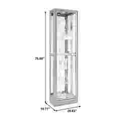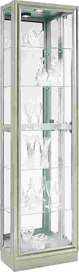 The beauty of the Rootmart silver curio cabinet is in the simplicity of its form. The contemporary, linear styling blends beautifully with the platinum finish. This curio features four adjustable glass shelves and one fixed shelf for plenty of display area. The mirrored back panel helps reflect the clean design. Customer assembly is required.