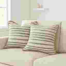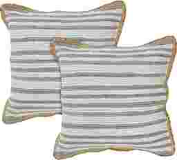 Decorate your space with this beautiful set of 2 coastal throw pillows. Handmade from a textured cotton blend fabric, it boasts a jute frame for both quality and style. With a classic striped pattern, it blends effortlessly into your existing decor, while adding a fresh look. Perfectly placed on your sofa, chair, or bed, it is sure to add elevated design and dimension. Poly inserts included.