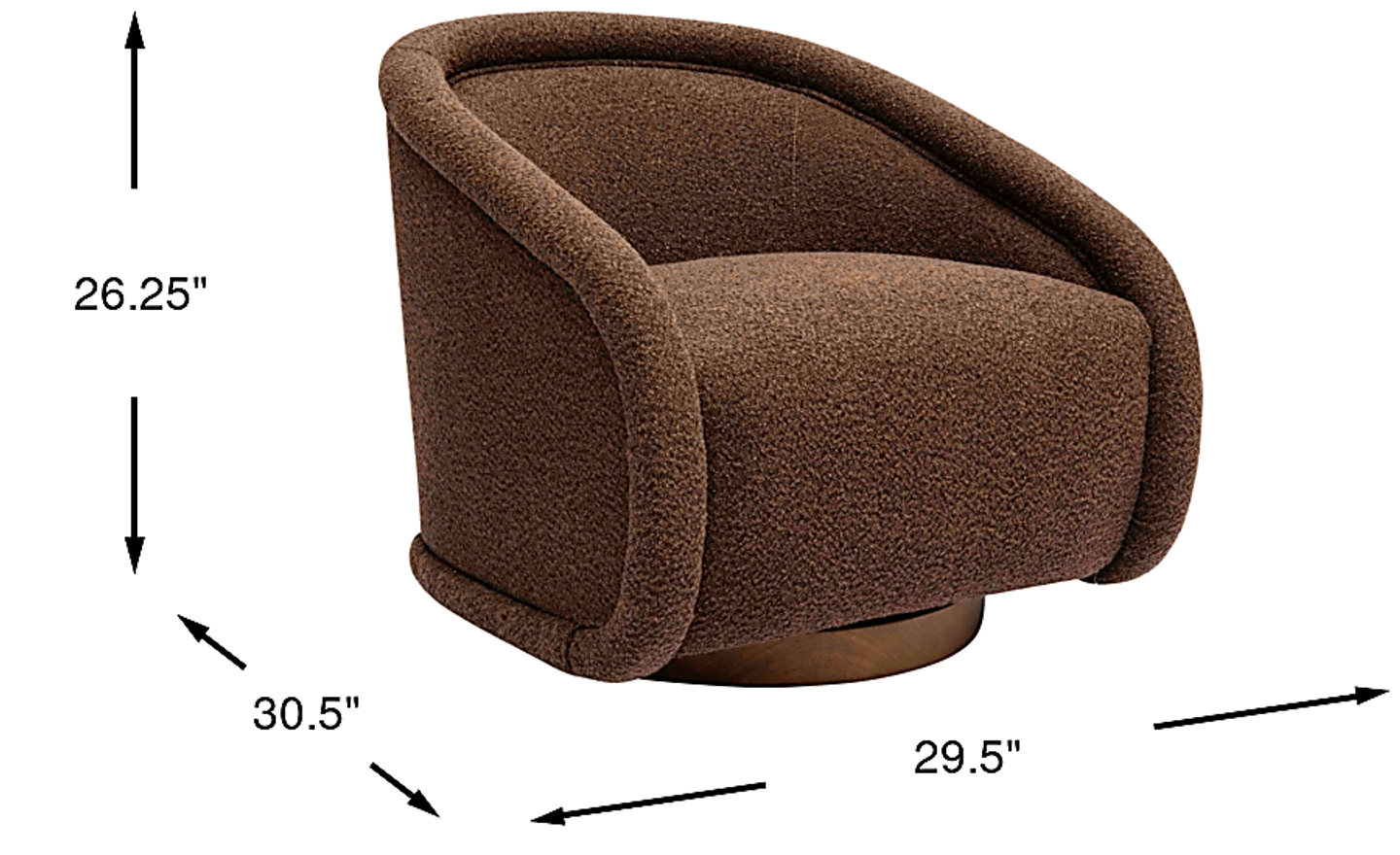 Introducing the Rory brown swivel accent chair. Designed with a solid wood base and a swivel function, its wrapped shelter arm and wide, deep seat offer unparalleled comfort and the perfect space to accessorize with your own pillow. The sensuous sloping back ensures this chair remains a stunning focal point, no matter where it's placed in the room. Customer assembly is required. Upholstery: 100% Polyester.