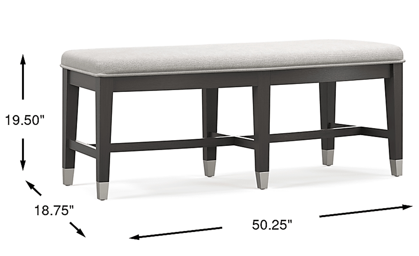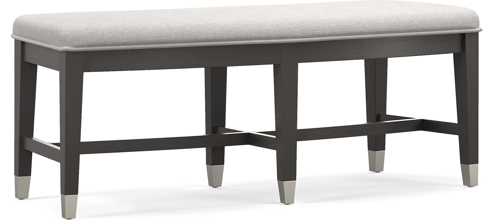 With design details to delight guests and family, the Rosalie bench is a functional work of art that everyone will want to come back to again and again. This contemporary seat is beautiful from every angle with gray upholstery, a rich espresso finish on oak veneers and nickel foot caps on each leg.
