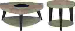 With built-in features and design details to delight guests and family, the Rosalie table set features functional works of art that everyone will want to come back to again and again. This transitional set is beautiful from every angle with unique and contrasting espresso and gray oak veneers. The intricately designed tempered glass inlay in the cocktail table adds the perfect touch of class to your family relaxation experience. Casters under the bottom shelf make it a breeze to move this table whenever desired. The matching end table table also features a round top and convenient lower shelf.