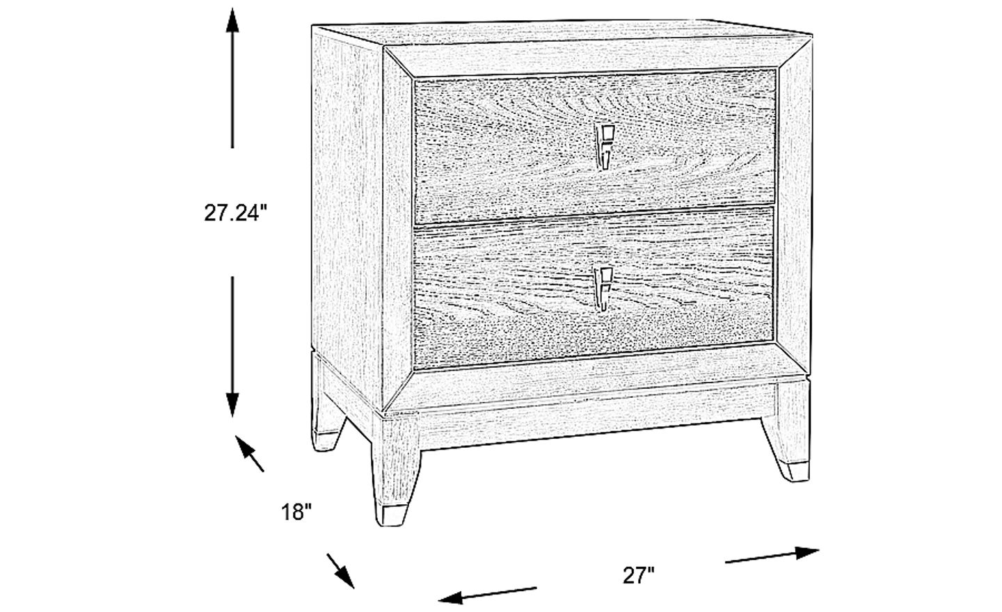 Intricate design meets grand sophistication in the elevated, opulent aesthetic of the Rosalie nightstand. Contemporary in style and constructed of wood solids, this nightstand features a two-tone gray and black color with an inlaid frame design. Both drawers feature a metal pull, English dovetail joints in the front, French dovetail joints in the back and side mount ball-bearing glides for support and longevity.