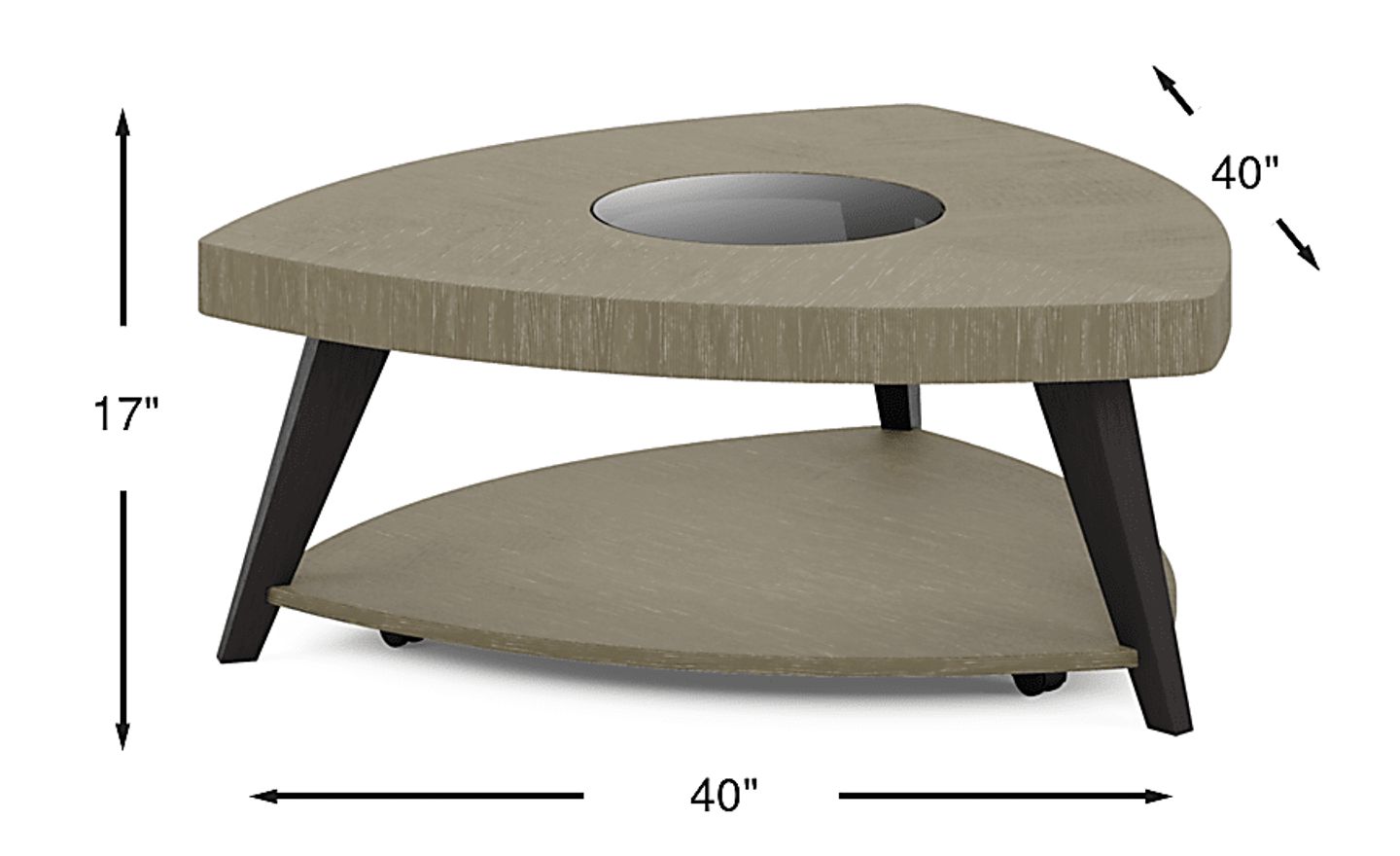 For optimal comfort and a professional look, your cocktail table should stand approximately 1 to 2 inches lower than the top of your sofa's seat cushions. Measuring 17 inches high, this transitional piece is designed to pair seamlessly with most standard-height sofas. Our experts also recommend following the "18-inch rule," which suggests leaving 16 to 18 inches of space between the table and the sofa to ensure there is ample legroom while keeping the surface within easy reach.