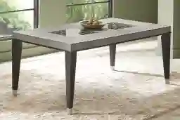 With built-in features and design details to delight guests and family, the Rosalie dining table is a functional work of art that everyone will want to come back to again and again. This contemporary piece is beautiful from every angle with unique and contrasting espresso and gray oak veneers. The intricately designed acrylic mosaic inlay in the tabletop and nickel foot caps on each leg add the perfect touch of class to your family dining experience.