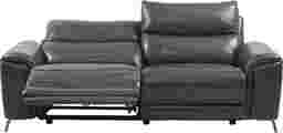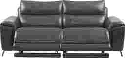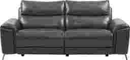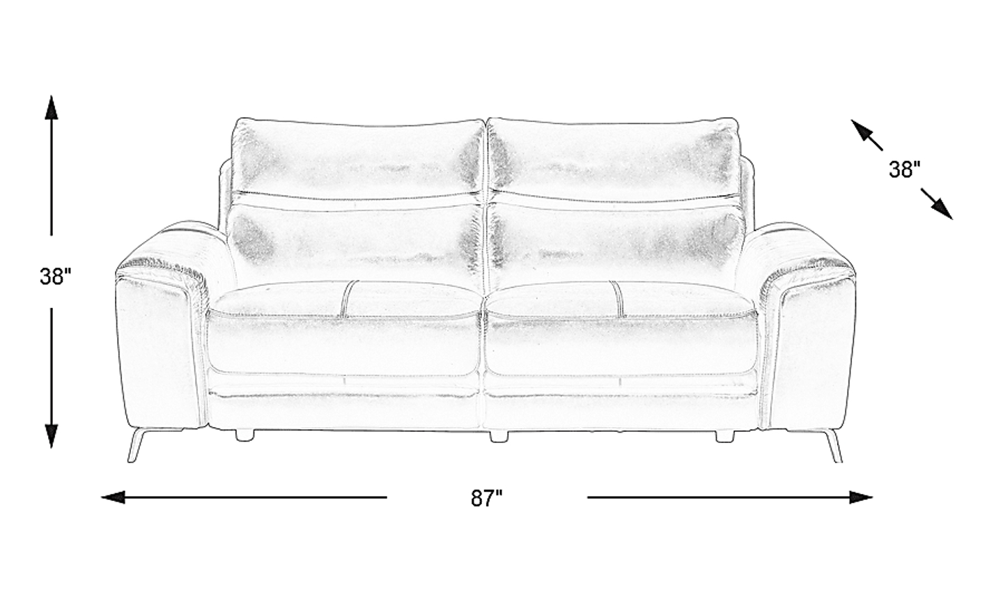 Combining sleek contemporary style with power reclining comfort, the Rosato sofa is a luxurious choice. Sumptuous top grain leather wherever the body touches is offered in an on-trend gray color and features beautiful top stitching detail. For customized comfort, the sofa's padover chaise footrest can be raised and lowered to any position at the touch of a button. A convenient USB port keeps electronic devices charged up and ready to go. Metal legs offer support and reinforce the modern aesthetic. Top Grain Leather Where the Body Touches and Vinyl Sides and Backs.