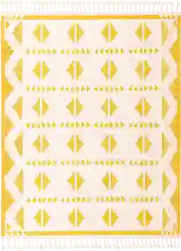 While the vibrant yellow and white geometric pattern provides an exciting Southwestern flair, its transitional design allows it to blend seamlessly into various decors. To keep the room balanced, try pairing this rug with neutral-toned furniture in beige, cream, or light gray. This allows the rug to act as a sophisticated focal point. Incorporating natural wood accents or leather seating can also enhance the earthy, tribal aesthetic while grounding the room’s color palette.