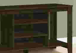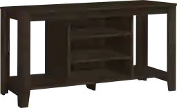 The Rosebite dark brown console fits nicely in your living room or games room, saving space in tighter areas and adding style with its dark taupe wood-look finish. Including two adjustable center shelves, the entertainment center also features an additional bottom shelf, two larger side shelves and a solid base, allowing you to display all sorts of audio/video components and decor items. Accommodating all TV sizes equipped with a center stand, this media console adds character to your small home, apartment or condo. Customer assembly is required.