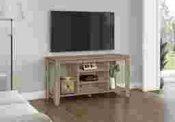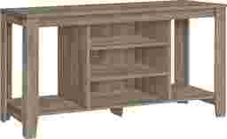 The Rosebite taupe console fits nicely in your living room or games room, saving space in tighter areas and adding style with its dark taupe wood-look finish. Including two adjustable center shelves, the entertainment center also features an additional bottom shelf, two larger side shelves and a solid base, allowing you to display all sorts of audio/video components and decor items. Accommodating all TV sizes equipped with a center stand, this media console adds character to your small home, apartment or condo. Customer assembly is required.