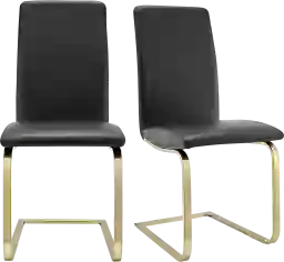 The cantilever leg style is a hallmark of modern furniture engineering, providing a unique "flex" that offers a subtle, ergonomic bounce for added comfort during long meals. The metal construction provides exceptional structural stability and is particularly well-suited for humid or coastal climates where traditional solid wood frames might be more susceptible to warping over time. The gold finish adds a refined, luxe touch that serves as a high-contrast accent to the black upholstery.