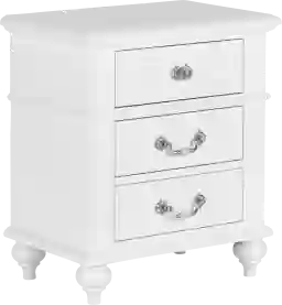 The Roseton white nightstand is the perfect bedside addition to your bedroom. This nightstand comes with three, spacious drawers, perfect for keeping all your bedside belongings within reach. The bottom drawer features a dust proofing bottom to help keep all your belongings in great condition. The crystal-like drawer handles, and knob add an extra layer of style to this already stunning piece. Bevel edges and a clean, crisp white finish complete the look of this transitional design. Customer assembly is required.