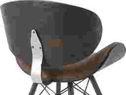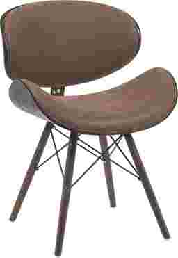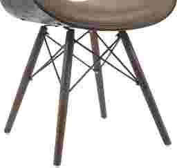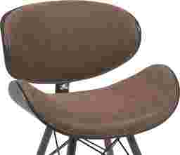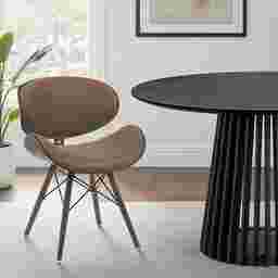Bring a touch of sculptural sophistication to your space with the Rosewat brown side chair, a statement piece that delivers comfort, elegance, and practicality in equal measure. This eye-catching chair features a gently curved seat and backrest upholstered in premium faux leather, offering supportive comfort with a medium-firm cushion ideal for long meals, work sessions, or relaxed gatherings. The distinctive silhouette showcases a medium-high open back for airflow and natural posture alignment, while the signature Eiffel-style base adds a nod to iconic mid-century design. Sturdy metal crossbars accent the tapered wood legs, enhancing structural integrity and visual appeal. Thoughtful touches like integrated floor protectors help preserve surfaces, while the streamlined design ships in one box for quick and easy assembly. Customer assembly is required.