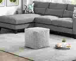 Whether the Roseya serves to provide stylish accent to your home's decor, convenient seating when the need arises, or as perfect place to put up your feet, the square accent pouf's versatility of purpose makes it a convenient addition to your space. The pouf is covered in gradiated black and white chenille fabric upholstery. Customer assembly is required.
