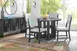 Rosolli Black 5 Pc Round Dining Room with Blue Upholstered Chairs