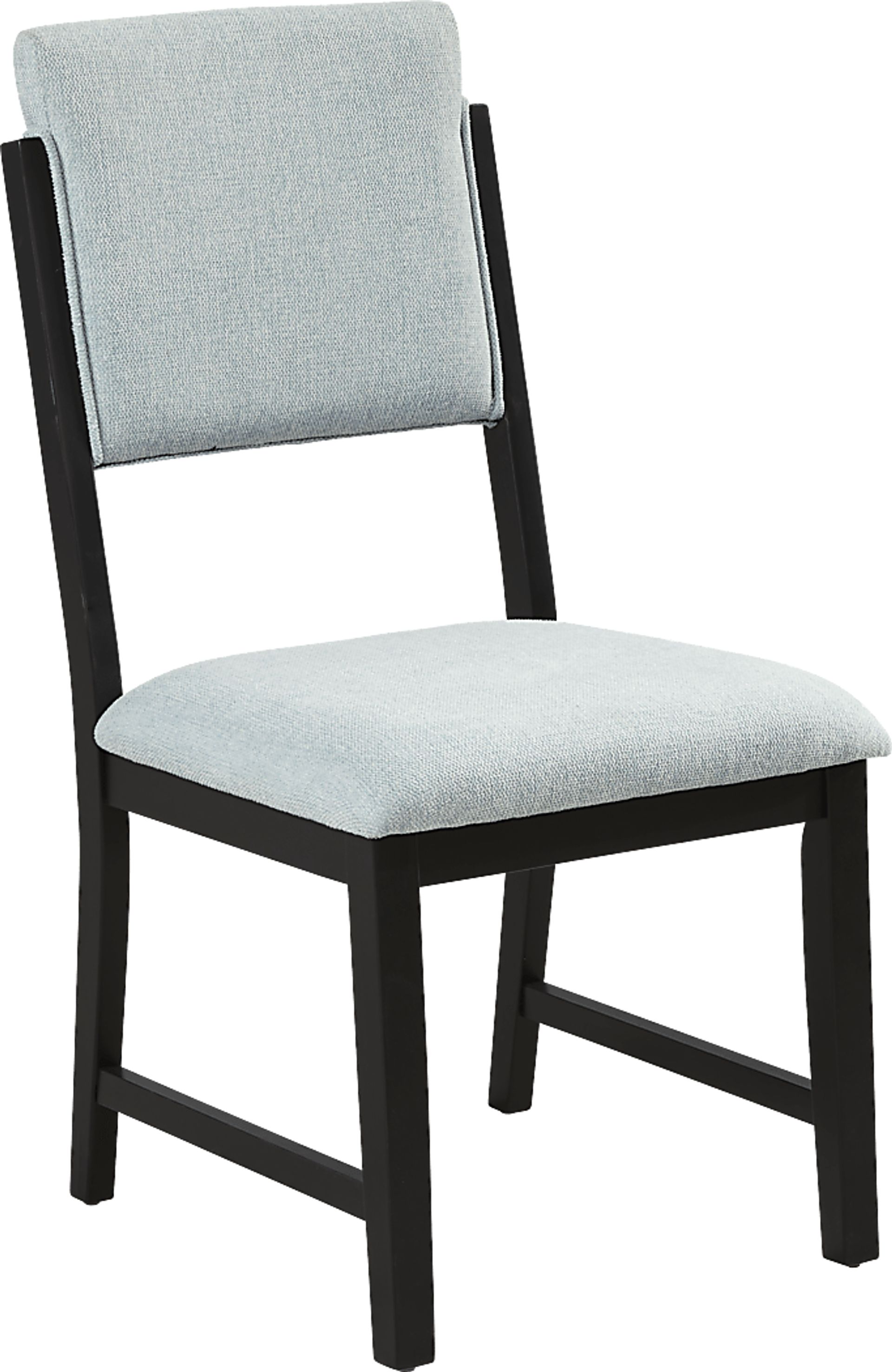 Open and inviting with the fresh energy of modern loft, the Rosolli side chair makes meals as delightful as the effortless flow of conversation. With legs constructed with wood veneers in a black finish, this contemporary piece showcases upholstered back and seat cushions in a soft blue hue for a sophisticated touch.