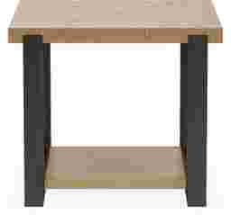 The high-contrast pairing of a rich black finish and light woodgrain makes this end table a versatile centerpiece for contemporary or transitional rooms. Our styling experts suggest layering the tabletop with metallic accents, such as a brushed brass lamp, to elevate the look. The lower shelf is an ideal spot for curated items like hardbound books or a textured basket, which adds functional storage while grounding the piece's bold architectural lines.
