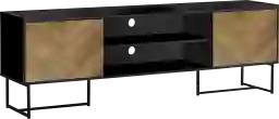 Bring versatile form and function to your living room or bedroom space with this Rothmullan 72 inch tv stand. Crafted in a contemporary design, this media entertainment center features a stylish black metal frame that solidly support the black laminate top, complemented by stylish V groove lines on the brown wood-look doors. This durably designed console has a fixed shelf in the middle with one wire management hole in the center above the shelf. Two closed cabinets with a push latch mechanism to open and close, provide concealed storage for all your media components and accessories. This slim and elegant design makes it easy to assemble with full illustrated instructions included, providing ample storage for all your media and gaming needs. Customer assembly is required.