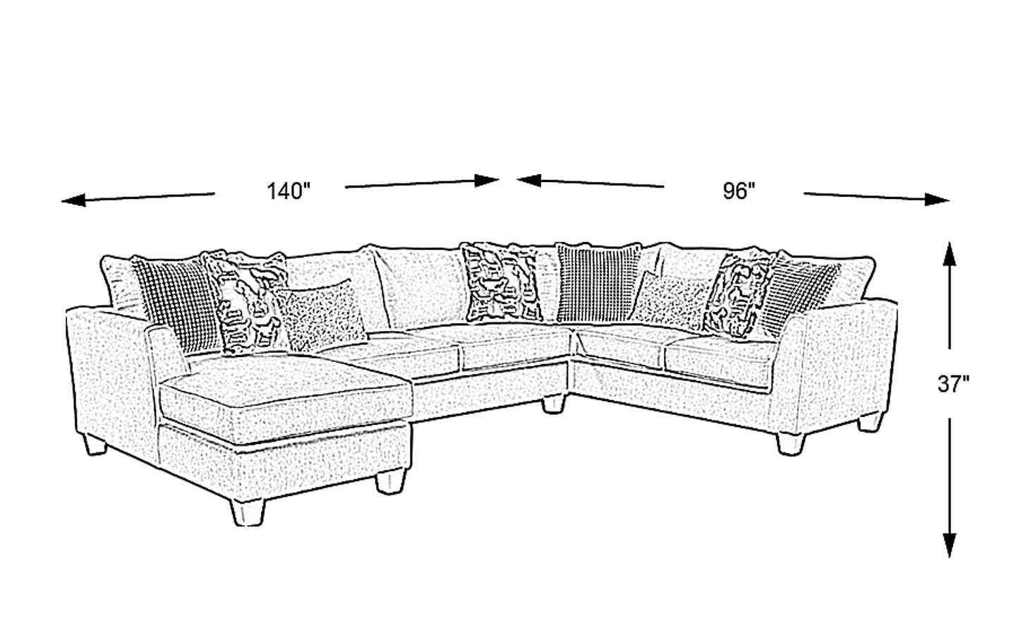 140"w"w x 96"d"d x 37"h"h