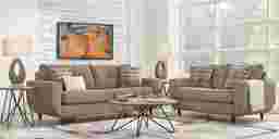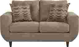 Mid-century modern design makes the Rowlett loveseat a stylish choice for contemporary living rooms. Upholstered with soft chenille in beige, this piece showcases sleek curves and elegant tapered legs. Tufting detail on the back cushions along with decorative accent pillows bring color and texture to its classic look. Seat cushions are reversible, extending the life of the loveseat so you can enjoy its comfort longer. Upholstery: 100% Polyester.
