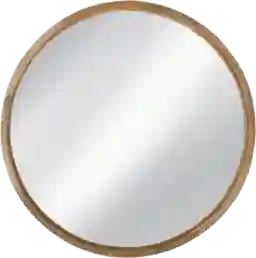 The Roxleigh natural mirror is a round decorative wall mirror. The face is a wood finish, and the sides feature a black and ivory bone motif.