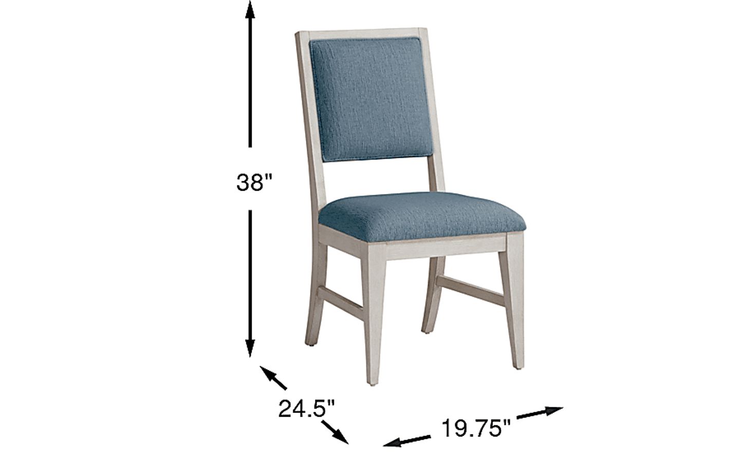 This chair is defined by a "casually contemporary" aesthetic. The combination of the cool blue upholstery and the sophisticated ivory finish on the legs creates a neutral yet warm palette. It serves as an excellent focal point for modern, transitional, or coastal-inspired dining rooms, adding a touch of geometric sophistication without overwhelming your existing decor.
