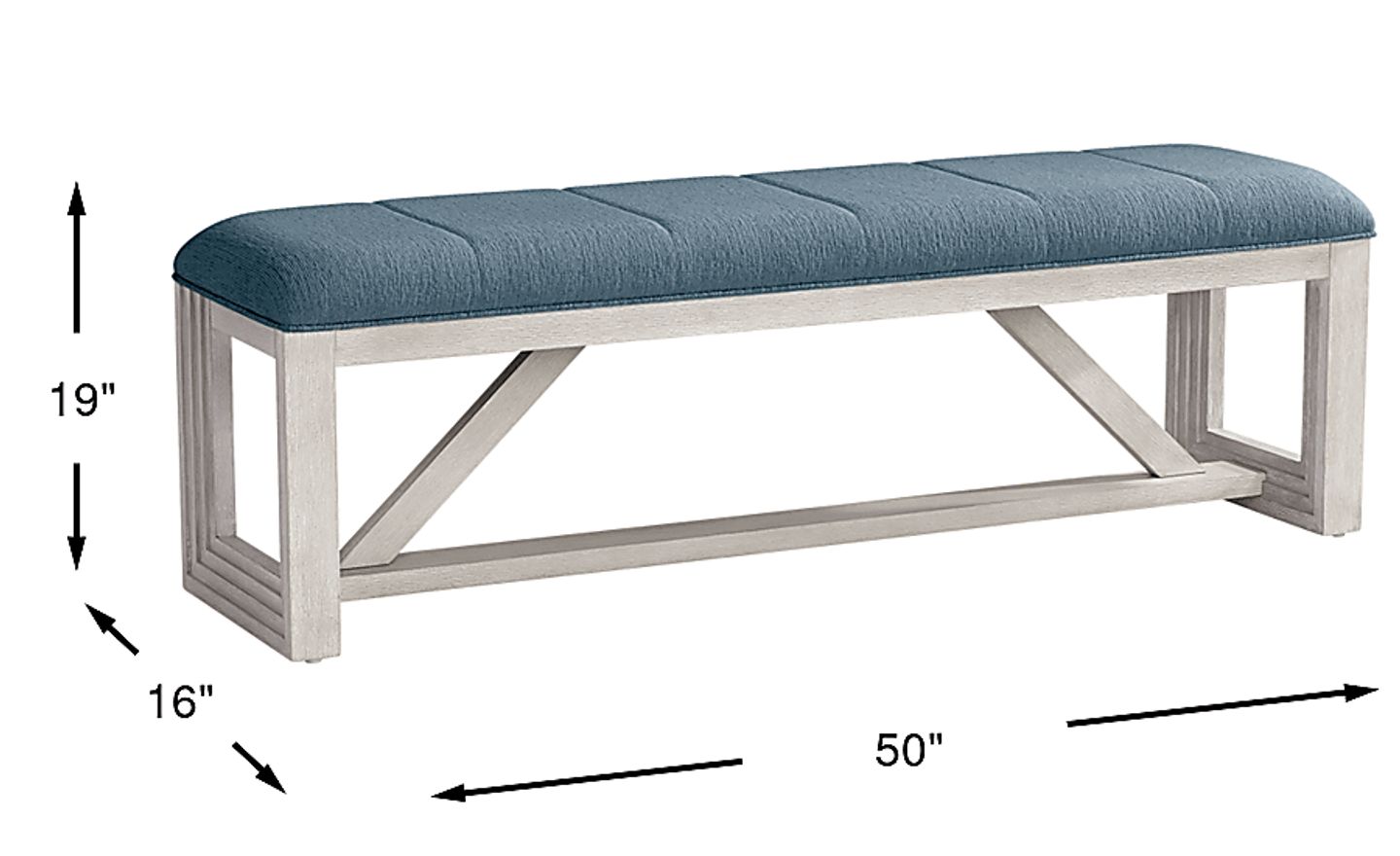 While designed for the dining room, this contemporary upholstered piece is highly versatile. Its sophisticated soft ivory finish and plush blue cushion make it a functional addition to a foyer or entryway as a convenient seat for putting on shoes, or it can be placed at the foot of a bed in a primary suite to add a layer of tailored comfort to your bedroom decor.