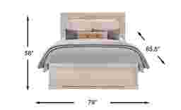 The bed is beautiful and built very well. Its a neutral piece and the lighting gives a great ambiance to the bedroom. Love the storage as well.