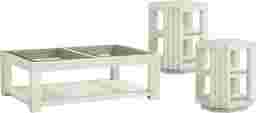 Designed to pull a room together without overwhelming your living space, the effortless elegance of the Royal Park table set elevates your home. Cherry veneers finished in elegant ivory and bold geometric lines create a look that's both timeless and on-trend, while the cocktail table's dual glass inserts keep the centerpiece feeling light and open. Coordinating chairside tables showcase a distinctive octagonal shape with dual open shelves, offering the perfect place to keep books, remotes or décor close at hand.