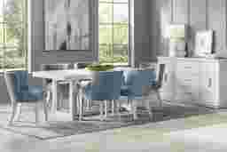 Royal Park Ivory 5 Pc Dining Room with Blue Upholstered Chairs