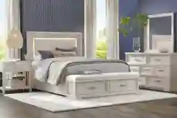 While this bed offers excellent built-in storage to help declutter smaller rooms, it is important to note its total depth of 100.5 inches. This elongated profile—due to the storage footboard—makes it a standout feature in a master suite but requires careful measurement of your walkway space. For urban living, the built-in drawers are a strategic alternative to a separate chest of drawers, effectively maximizing every square foot of your floor plan.