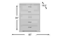 The sculpted look and soothing feel of the Cindy Crawford Home Royal Park chest brings a refined tranquility to your restorative retreat. Showcasing embossed cherry veneers in a subtle champagne finish, this casual contemporary piece features five drawers framed by a chic inlaid design with metal bar pulls. Smooth side mounted ball-bearing glides and English dovetail construction ensure the support and longevity of this sophisticated piece.