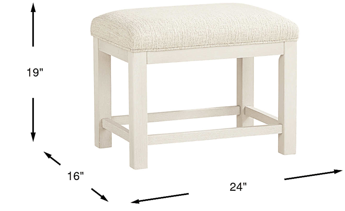 Designed to pull a room together without overwhelming your living space, the effortless elegance of the Royal Park sofa table stool elevates your home. Cherry veneers finished in elegant ivory create a clean, versatile frame, while the upholstered seat in a soft neutral fabric adds comfort and texture. Perfectly sized to tuck beneath the matching sofa table, this piece offers flexible seating and a stylish finishing touch that blends seamlessly into your living room.