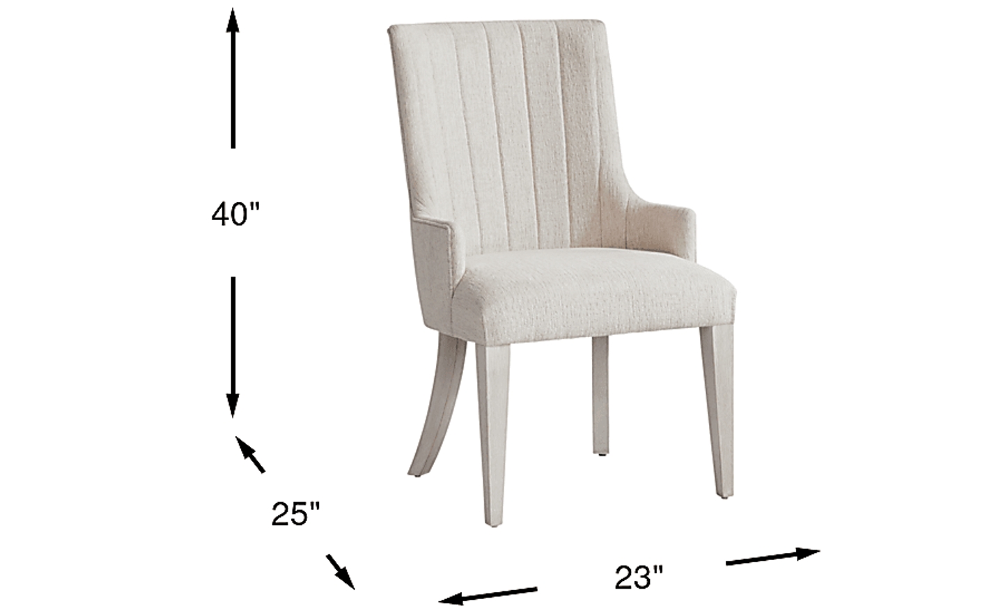 The neutral tones and curved lines of the Royal Park arm chair create a warm sophistication for all of your mealtime get-togethers. Casually contemporary in style and upholstered in a soft champagne fabric, this chair features a sleek, channeled design on the back and a creative outturn in the back legs, bringing a luxurious ambiance to your dining experience. Upholstery: 100% polyester.