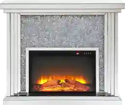 The Royalston fireplace is a gorgeous addition to any sitting or living room. The electric fireplace boasts of fully mirrored fronts and sides, between a fully mirrored top and base. The fireplace features a large front mirror face with faux diamonds inserts and sides mixed with beveled mirrored columns in a unique geometrical design. With touch control technology and temperature remote control, this beautiful piece will dress up any room in your home. Customer assembly is required.