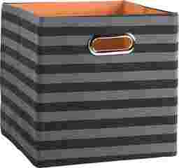 The Rugby Black and Gray Striped Square Storage Bin by Jude creates a trendy yet stylish edginess to storage. Lightweight, yet durable, this fabric bin keeps clutter out of the way and tastefully contained. Rugby Black and Gray Striped Square Storage Bin