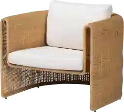 Rustic craftsmanship meets bold geometry with the Rushcorp brown accent chair. This bohemian piece is handcrafted from sustainably sourced natural rattan. Its classic barrel silhouette presents smooth, rounded edges from every angle while the arms encourage casual relaxation. The Rushcorp will arrive fully assembled and is fitted with a removable seat cushion padded with plush foam and upholstered in sumptuous fabric. Employing a unique exotic take on classic design, this chair adds a tranquil feel to any setting.