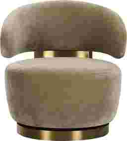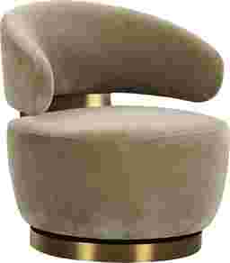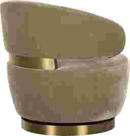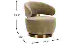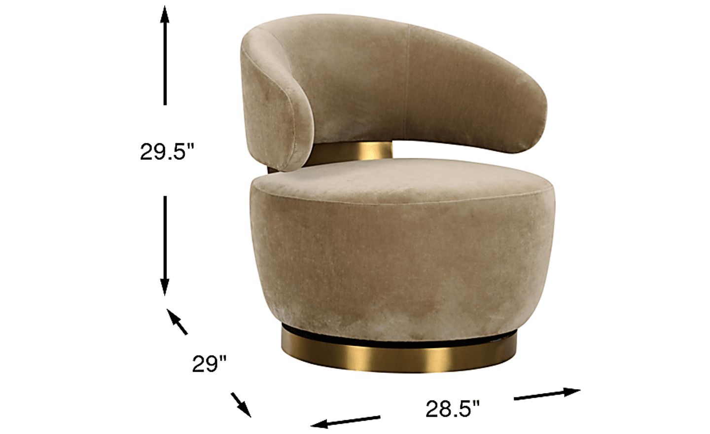 Plush, stylish, and bold, the Russe oat-beige swivel accent chair is an undeniably unique piece. Its soft and cozy recycled fabric upholstery complemented with brushed gold finishes is timeless and inviting. This eye-catching chair will add a pop of style to any space. Upholstery: 50% recycled polyester, 50% polyester.