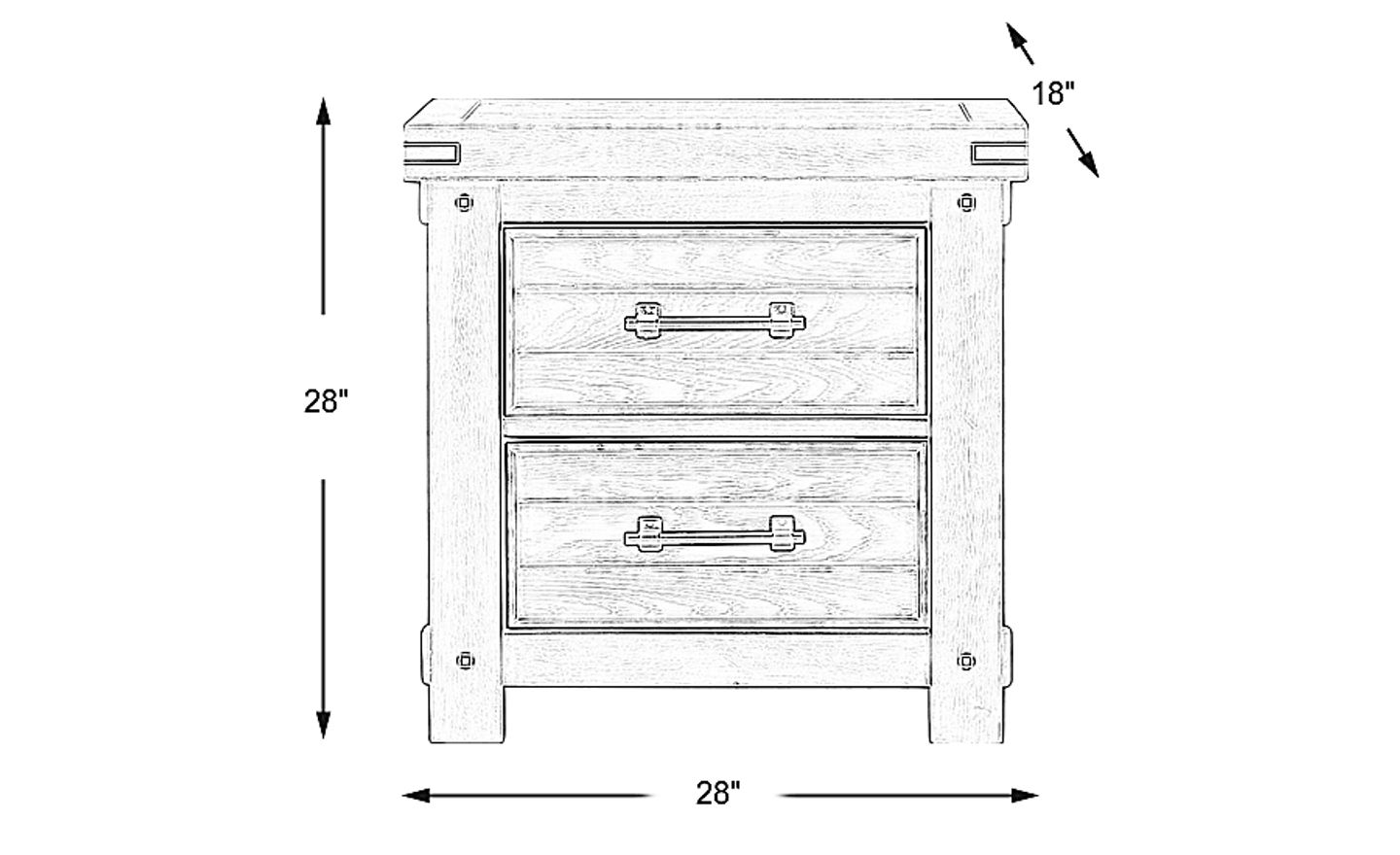 Warm rustic styling and double storage drawers create the appealing Rustic Haven nightstand. This charming bedside piece is made with wood solids and acacia veneers in a white finish. Each drawer is made using French and English dovetail joints for durability. Plank detailing, wooden-style pegs and Industrial-inspired hardware create the look of a reclaimed treasure.