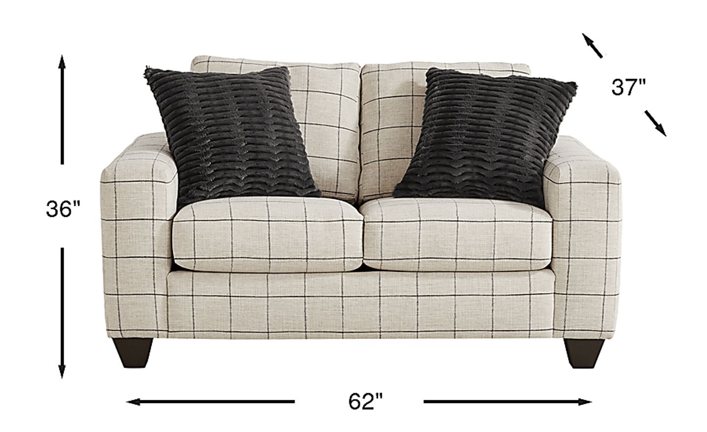 At 62 inches wide, this loveseat is highly versatile. It is substantial enough to serve as primary seating in a smaller living room or urban studio, yet its "track arm" design keeps the profile slim enough to function as an elegant accent in a master bedroom or home office. The neutral beige windowpane pattern offers a sophisticated, tailored look that adds visual interest without overwhelming smaller environments.