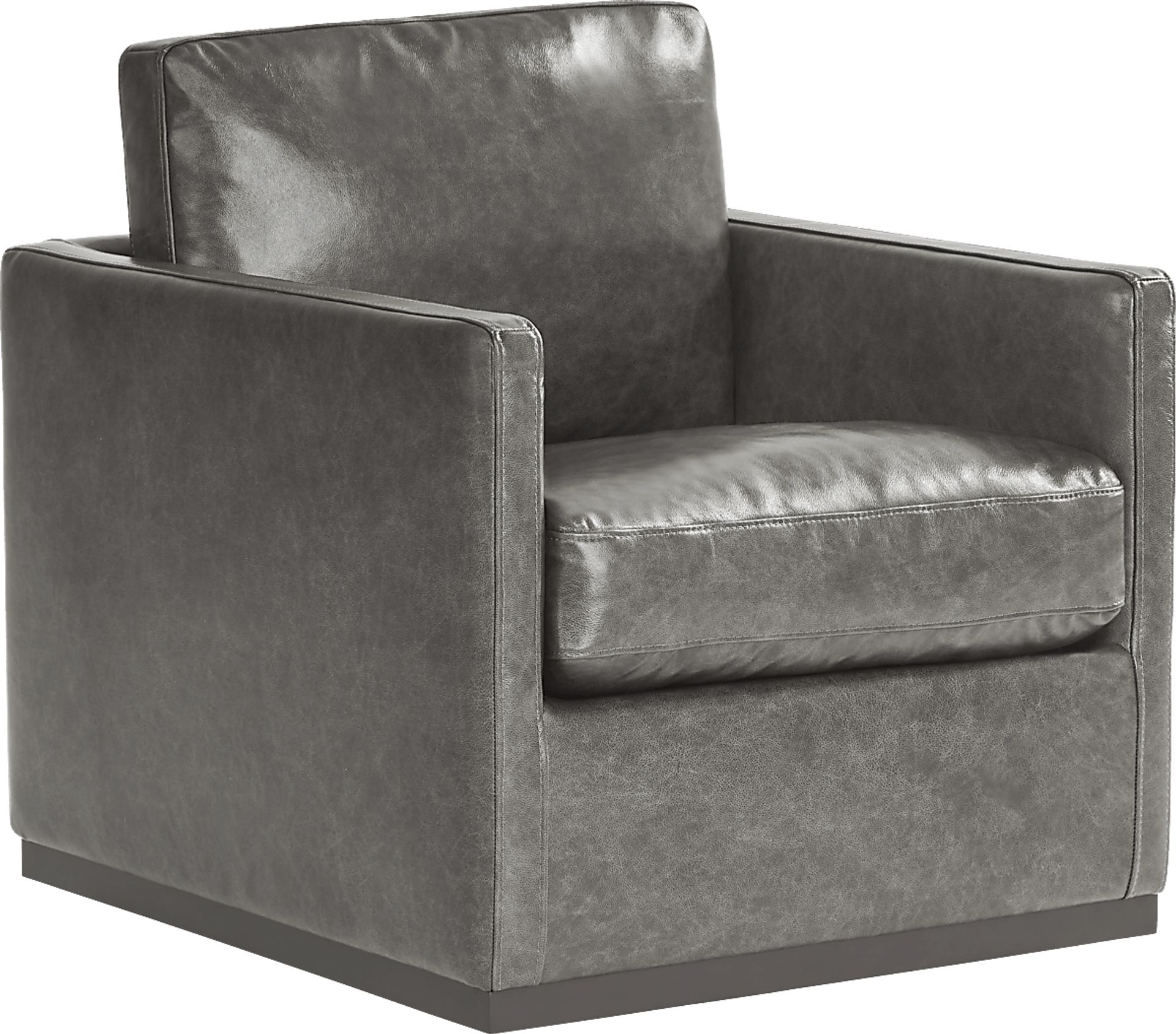 With golden age style and an unforgettable silhouette, the Ryker swivel chair is a piece that effortlessly belongs in the luxurious confines of a top-floor lounge or an exclusive speakeasy. Guests who settle into the sumptuous onyx top-grain leather where the body touches of this seat will find that they can easily follow any conversation in the room thanks to its 360-degree swivel function. Smooth, top-stitched seams on each side add subtle visual appeal & texture, and the removable seat cushion is exceptionally easy to clean. Upholstery: Top grain leather where the body touches and polyurethane fabric sides and backs.