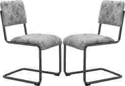 Embrace the sleek vintage style as the Rylander white dining chairs feature a cantilever style frame with plush seat and separate back upholstered in quilted textured fabric. Upholstery features a distressed cracked leatherette appearance while the touch is soft plush diamond quilted to poly-blended vintage white on the seat and back. The frame on the set of two chairs is finished in dark distressed steel giving the chair an antique yet urban feel. Some assembly required. This product ships directly from the vendor and will arrive separately from your Rooms To Go truck delivery.