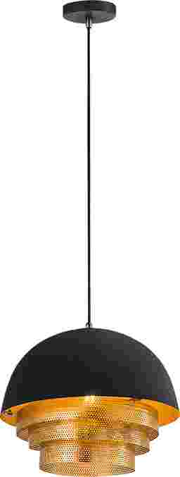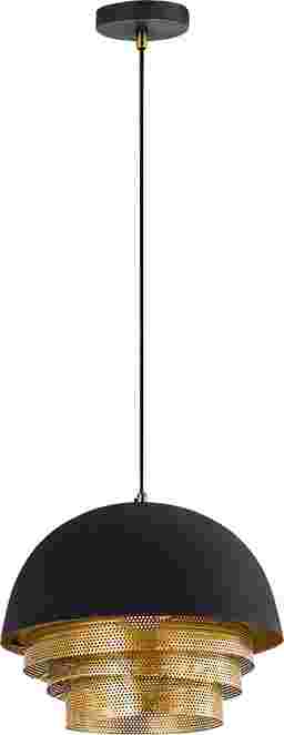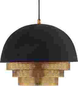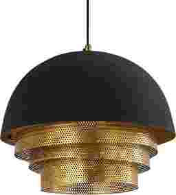 Add a warm glow and stylish atmosphere with the Rylor II pendant. Flaunting a matte black dome over three tiers of perforated brass rings. Use alone are in groups to brighten up your space. Customer assembly is required.