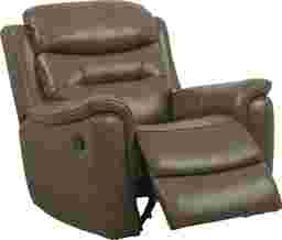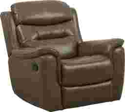The Sabella recliner has everything you need for relaxing in style. This contemporary recliner offers gliding motion along with the full body support of a padded headrest and padover chaise footrest. Upholstered in supple top grain leather where the body touches, the recliner also boasts pillowtop arms and a pub-style back. The taupe color is an easy complement to a variety of settings. Top grain leather where the body touches and vinyl sides and backs.