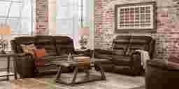 Luxurious leather and comfortable design take center stage with the Sabella collection. This contemporary living room is upholstered in sumptuous top grain leather where the body touches. Pillowtop arms, pub-style backs, padded headrests and padover chaise footrests provide cozy comfort on the sofa while the walnut tone adds a distinctive color to enhance your decor. Upholstery: Top grain leather where the body touches and vinyl sides and backs. Leather is a durable, low maintenance product, however, general regular maintenance is necessary. To keep your leather clean, vacuum it regularly, removing any dust, and clean it with water and a mild non-detergent soap. Accent pillows not included.