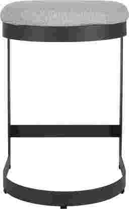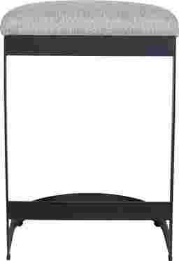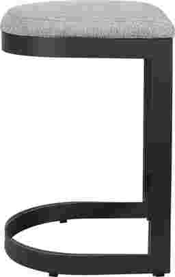 The Sabin outdoor counter stool blends industrial style with cozy comfort, featuring a durable, powder coated steel frame in java black paired with a plush cushion in heavily textured taupe gray solution dyed acrylic fabric.